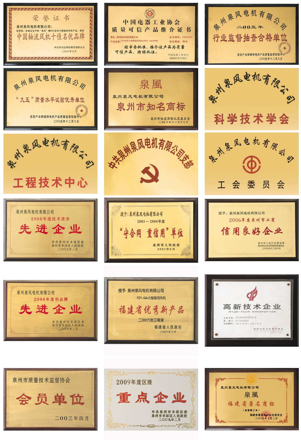 In 2002, it was awarded the title of "top ten reliable brand in fan industry" by China Technology Association
